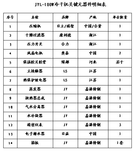 結(jié)構(gòu)冷凍式干燥機(jī)本質(zhì)上是一種熱交換設(shè)備,任何型式的冷凍式干燥機(jī)都是由空氣熱交換系統(tǒng)、制冷系統(tǒng)、氣水分離系統(tǒng)及電氣控制系統(tǒng)等部分組成。制冷系統(tǒng)由冷媒壓縮機(jī)、蒸發(fā)器、冷凝器及節(jié)流組件(毛細(xì)管或膨脹閥)等組成。含有大量水蒸汽的壓縮空氣主要在蒸發(fā)器里完成汽—液冷凝相變,在氣水分離器里完成液態(tài)水的凝聚與排出,從而獲得干燥的壓縮空氣。所以制冷系統(tǒng)的工作狀況直接決定了冷凍式干燥機(jī)的運(yùn)行情況,而氣水分離器的結(jié)構(gòu)與效率對(duì)成品氣的干燥程度(用壓力露點(diǎn)來(lái)表示)有至關(guān)重要的影響??諝鉄峤粨Q器的設(shè)計(jì)關(guān)系到冷凍式干燥機(jī)的節(jié)能運(yùn)行,并使壓縮空氣成品氣不致于在機(jī)器出口管道內(nèi)結(jié)露。