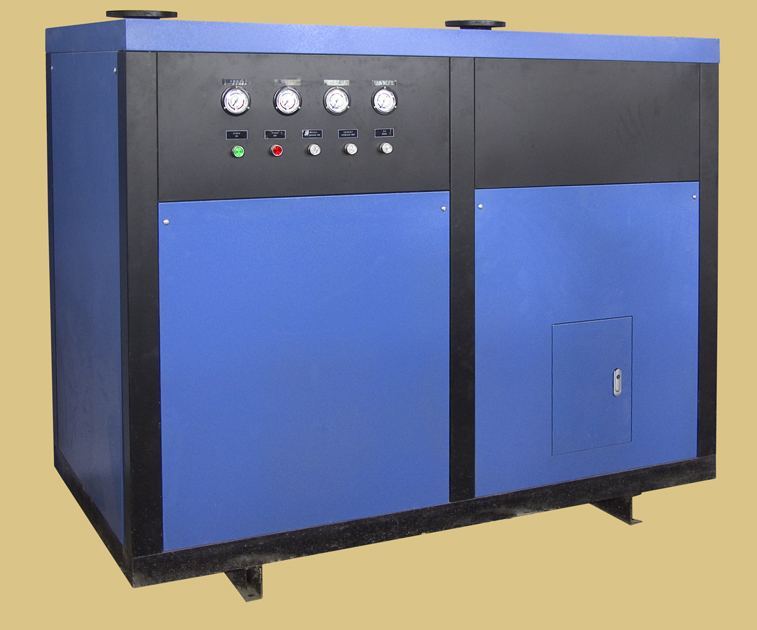 當(dāng)進(jìn)氣溫度過(guò)高時(shí),飽合水蒸氣含量急劇升高,此時(shí)必須對(duì)進(jìn)氣預(yù)先降溫后才能進(jìn)入冷干機(jī)的制冷系統(tǒng),通常在冷干機(jī)前增加后部冷卻器,當(dāng)進(jìn)氣溫度≤80℃時(shí)可選用本公司高溫型冷干機(jī)。